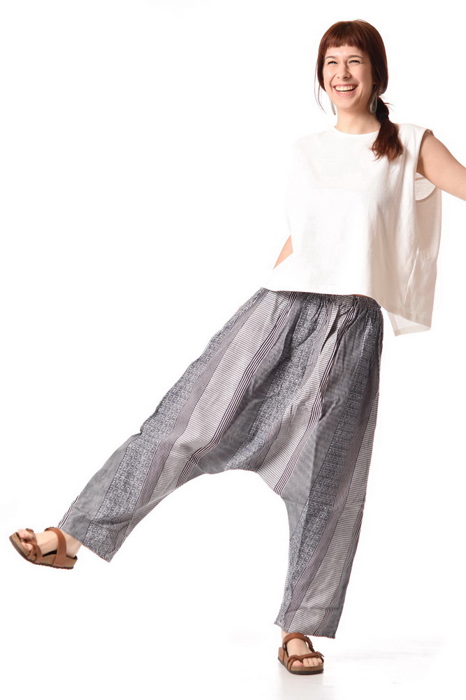 BOHO letné háremové nohavice zo 100 % bavlny spájajú pohodlie s originálnym štýlom inšpirovaným japonskou estetikou. Vďaka zníženému pudlu, voľnému strihu a ľahkému bavlnenému materiálu sú ideálnym kúskom na teplé dni. Objavte aj naše ďalšie kúsky z boho oblečenia zen štýle a vytvorte si svoj vlastný harmonický outfit.
