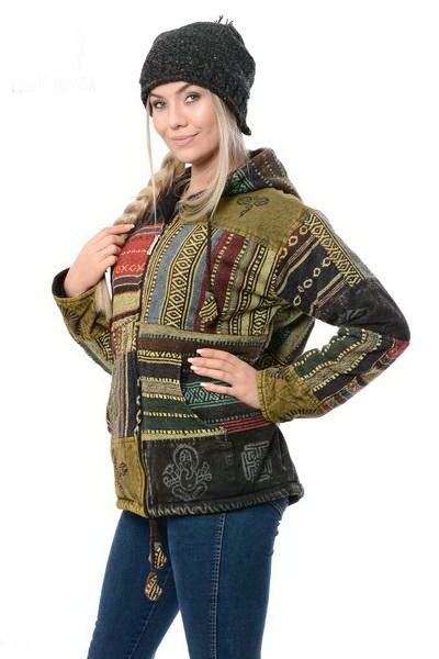 Hrubá etno mikina na zips zhotovená zo 100% bavlny je ozdobená etno printom. Bunda je zhotovená technikou patch a každý kus sa jemne odlišnuje od ostatných. Bunda disponuje veľkou zaťahovacou kapucňou, sťahovacím patentom v spodnej časti, dvoma vreckami na bruchu a jedným vnútorným na hrudi. Mikina je podšitá flísom a skvelá do zimného počasia. Priprav sa na zimu – čiapky, rukavice a mikiny na jednom mieste!