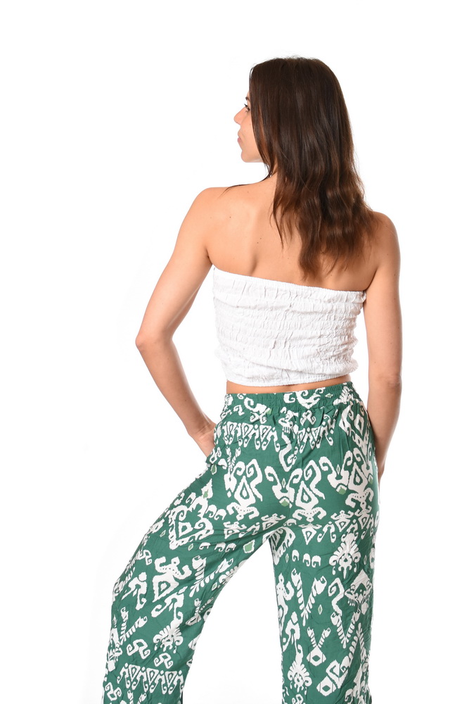 Jednofarebný, štýlový cropp top bez ramienok, elegantne zvýrazní ramená a dekolt. Vyrobený z elastického materiálu, bohato nariasený, čo dodáva topu jemne romantický nádych. Top má priliehavý strih typu "tube top" alebo "bandeau top". Vhodný na leto aj večerné príležitosti – kombinujte ho s nohavicami s vysokým pásom alebo sukňou.
