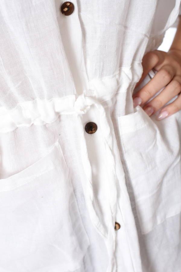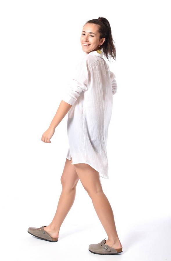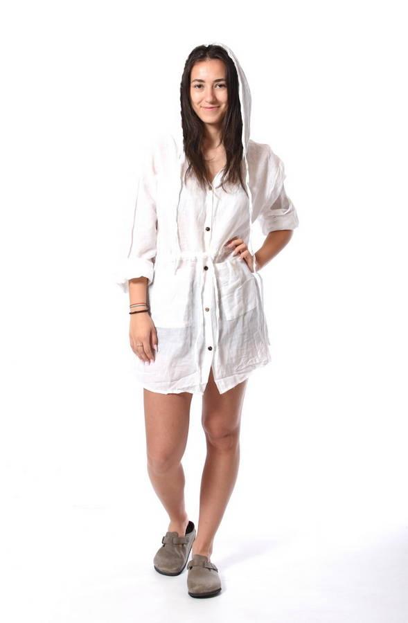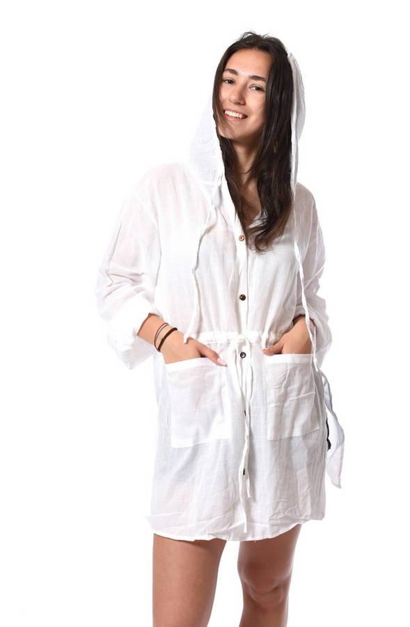 Dámska boho bavlnená košeľa s kapucňou a zapínaním na gombíky. Košeľa či tunika v jednofarebnom, priehľadnom prevedení vhodná do teplého letného počasia. Prevzdušnená, ľahučká letná košeľa disponuje dlhými rukávmi, zaťahovacou kapucňou, hlbokými rozparkami po stranách, tunelovým sťahovaním v páse a dvoma vreckami.