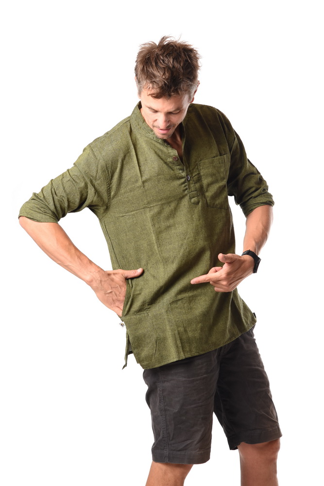Pánska jednoduchá ležérna polokošeľa zo 100 % bavlny je ideálnou voľbou na každodenné nosenie. Prírodný jednofarebný materiál je príjemný na dotyk, priedušný a vhodný aj na celodenné nosenie. Dlhý rukáv poskytuje vyšší komfort do chladnejších dní. Voľnejší strih zaručuje slobodu pohybu, zatiaľ čo praktické vrecko na prsiach dopĺňa minimalistický a nadčasový dizajn. Polokošeľa sa ľahko kombinuje s aladinkovými či klasickými nohavicami a hodí sa na voľný čas, cestovanie aj neformálne stretnutia.