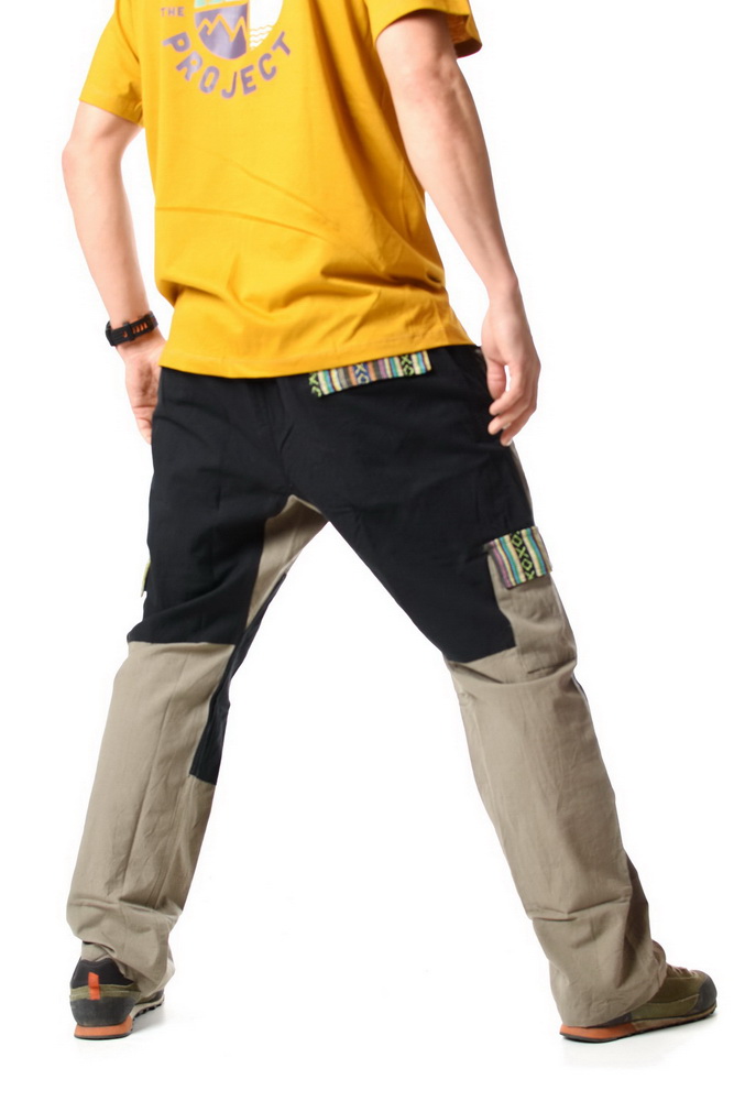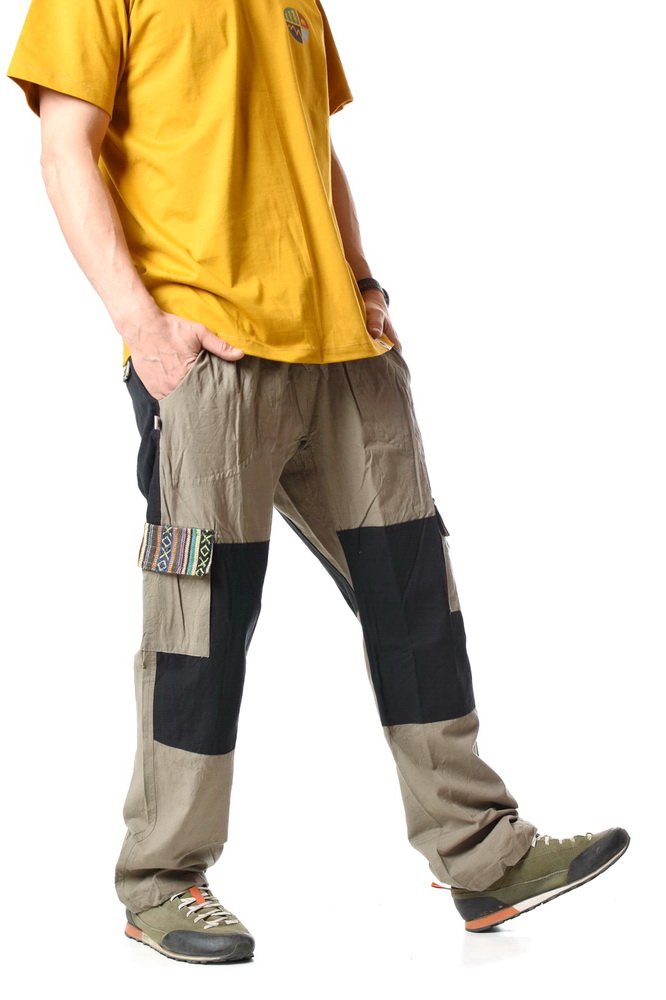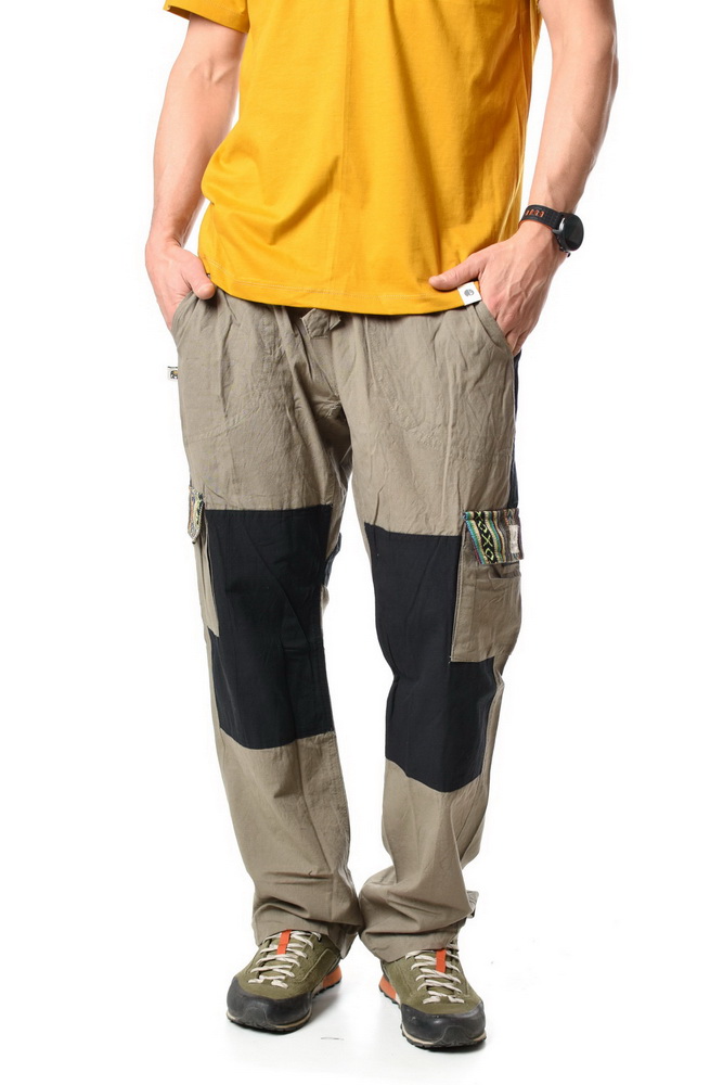 Pánske etno turistické nohavice zo 100% bavlny so strečovým pásom na gumu.  Nohavice majú 5 vreciek, z toho tri na suchý zips. Jedno vzadu a dve na stehnách.